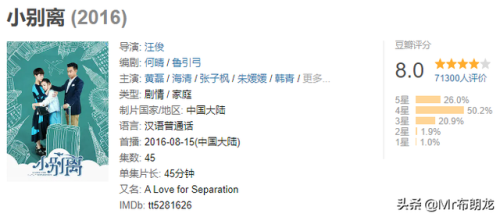 世间所有的爱都指向团聚,唯有父母的爱指向别离。汪俊导演作品,黄磊、海清、张子枫、胡先煦、赵今麦主演,豆瓣评分8.0分。《小别离》全剧围绕中学生出国展开,讲述了三个家庭面对孩子升学、留学、青春期的故事。《小别离》出自鲁引弓之手的教育系列四部曲《小痛爱》《小舍得》《小欢喜》《小别离》, 作为影视剧版的开篇之作,确实是开了一个好头,当然后面的《小舍得》和《小欢喜》也是非常值得一看的。首先感谢《小别离》把家庭剧带出了万年“婆媳恶斗”“妯娌矛盾”的泥潭,让观众惊喜地发现原来聚焦近年同为社会热点的“教育”领域也能拍出精彩的剧,受众还不亚于传统的婆媳剧。《小别离》全剧围绕中学生出国展开,世间所有的爱都指向团聚,唯有父母的爱指向别离,并不是父母不希望团聚,只是他们为了孩子可以牺牲太多,可见父母的爱何其伟大。不知道为何,在回顾本剧的时候不由自主地想起了初中的时候学过一篇朱自清的课文《背影》,当时并不懂得朱自清为何看到父亲离去的背影会泪流满面,直到长大后才明白是因为父亲丧失了年轻时的灵活矫健,这种爱和本剧似乎没有太多关系,但又似乎异流同源。