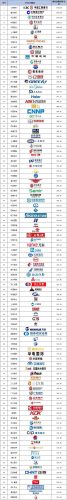 与去年榜单相比,工商银行、建设银行等11家企业,在2016年度至2017年度总榜排名中序位不变,品牌价值共计10553.73亿元,占总榜比重为28.09%。农业银行、上汽集团等20家企业,在2016年度至2017年度总榜排名中序位上升,品牌价值共计9341.69亿元,占总榜比重为24.86%。中国核电、华侨城A等18家企业首次进入2017榜单,品牌价值共计3855.82亿元,占总榜比重为10.26%。剩余51家企业品牌价值共计13823.78亿元,占总榜比重为36.79%
