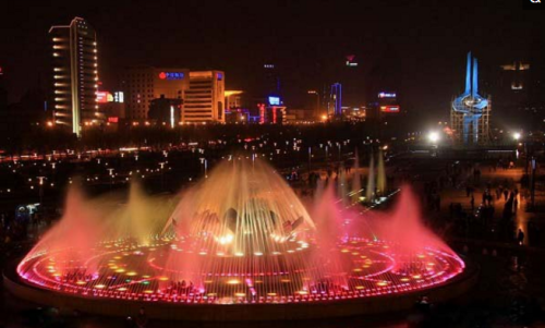 泉城广场坐落于济南市中心繁华地带,南屏千佛山,北依大明湖,西临趵突泉,东眺解放阁。