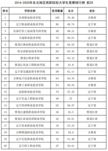 2-6 2016-2020年东北地区高职院校大学生竞赛排行榜
