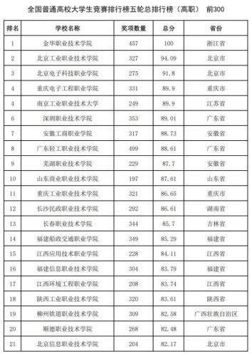 2-1 全国普通高校大学生竞赛排行榜五轮总排行榜(高职)