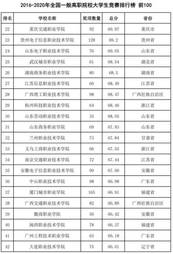 2-4 2016-2020年全国一般高职院校大学生竞赛排行榜