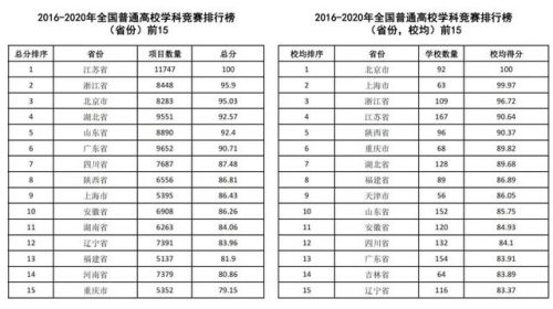 2021年3月22日,中国高等教育学会高校竞赛评估与管理体系研究工作组发布2020全国普通高校大学生竞赛排行榜,其中包含本科院校榜单13个、高职院校榜单10个、省份榜单3个(详见表1)。