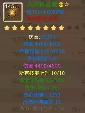 3、武器:选择相性五,附加异常20%,同时具备满伤和粉伤害属性,强化了火系伤害。配合绿强力遗忘属性,进一步提高了伤害输出。帽子:所有属性加成14%,同时具备满灵和满敏属性,粉饰所有或敏属性,提高了角色的综合能力。