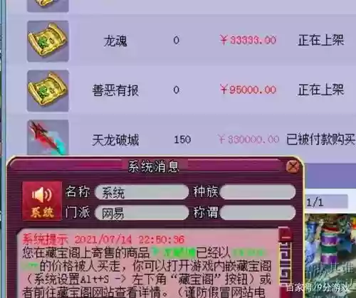 2、藏宝阁是《梦幻西游》官方提供的一种交易服务,玩家可以通过此平台出售自己的游戏角色或装备,买家则可以在平台上购买其他玩家的游戏账号。当你的号被藏宝阁系统标记为“被下单”时,意味着已经有买家对你的账号产生了购买兴趣,并且愿意按照系统提示的步骤完成购买流程。