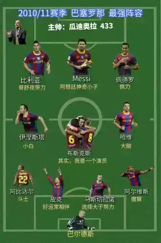 综上所述,巴萨最厉害的阵型是4-3-3,而最具代表性的阵容则是以梅西、伊涅斯塔、哈维等球员为核心的梦三队。这支球队凭借其出色的球员配置和战术打法,成为了足球历史上一段难以忘怀的传奇。