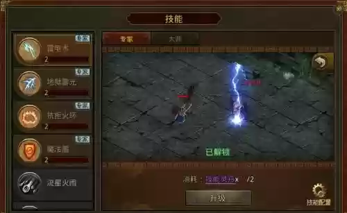 1、每个角色的主动技能在激活之后初始等级都是为0级,只有提升技能熟练度才能有提升技能的等级,一般性来说,只要角色不断的使用技能就可以获得技能的熟练度,也就是说挂机杀怪就能提升技能,缺点是只能够技能角色默认使用的技能。想要全面提升还得自己按技能才行。