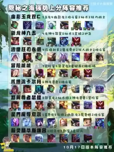 LOL云顶之弈版本强势阵容推荐如下:水晶游侠阵容 核心英雄:塔里克、艾希、千珏、拉克丝。羁绊组合:4水晶、4游侠、3光、1化身。玩法要点:必须抽到水晶属性的拉克丝,配合宝石和艾希组成4水晶阵容,以增强生存能力。千珏和拉克丝的关键装备能大幅提升输出。极地游侠阵容 核心英雄:艾希、塔里克、千珏。