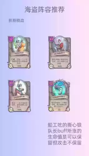 前期:尽量在前3轮内达成3海盗,以获取额外金币。若开局不顺,可选择吃连败+海盗的钱,同时升级人口。中期:2-1上4人口,2-3上5人口,打完石头人上6人口。期间少D牌,专注于升级人口,以便更容易抽到关键英雄。后期:接近4-3时观察场上形势,考虑是否卖血抢铲子。