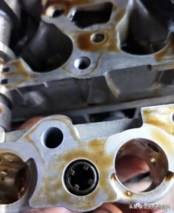 最后把第一排小瓦拆下看进排气调整共用的油道,果然,在滤网处发现一坨垫片胶,由此可以断定,油道堵塞引起该故障,这就是故障点。