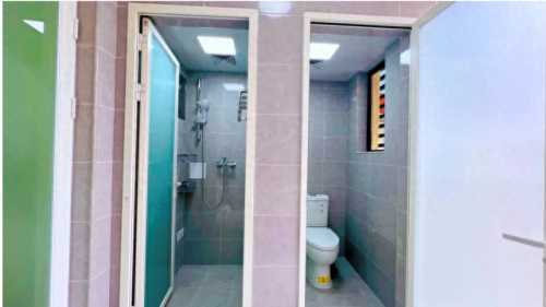 学校每个宿舍都配备完善的生活设施,如独立卫生间、空调、洗漱台、私人储物柜、花洒淋浴头、全天候热水供应系统等。