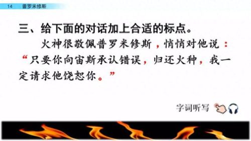 3.火神很敬佩普罗米修斯,悄悄对他说:“只要你向宙斯承认错误,归还火种,我一定请求他饶恕(shù)你。”
