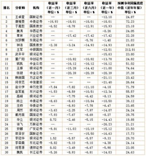 5月分析师研究实力榜排名后10名分别是国联证券王卓星、中泰证券康雅雯、国泰君安于嘉懿、华西证券魏涛、兴业证券章林、东莞证券 刘梦麟、国泰君安钟浩、中银国际王军、银河证券 武平平、华创证券董广阳。值得注意的是分析师研究实力榜后30名的分析师中,银河证券有多达6名分析师在列,分别为武平平、王婷、高峰、周然、华立、李冠华。联系到银河证券在券商研究实力榜后30名中排第5, 银河证券的研究实力着实让人汗颜。