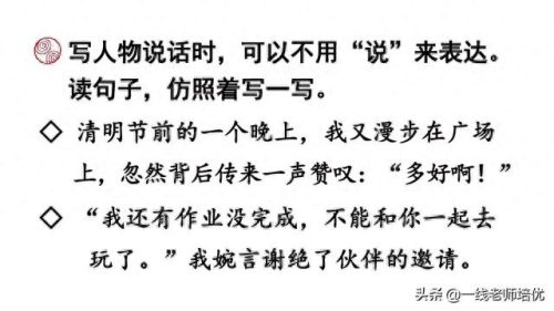 写人物说话时,可以不用“说”来表达。读句子,仿照着写一写。