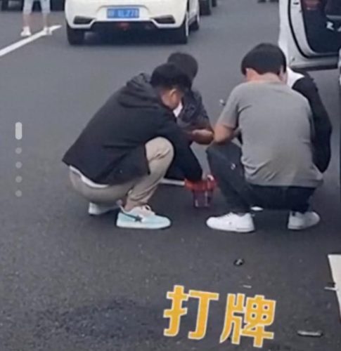 面对这些不动的车流,大家也是纷纷找出了缓解无聊的方法。