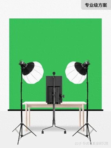 专业灯光采用的是神牛双灯方案,神牛灯光质量优,200W亮度高,但是价格较高。两盏灯光分别放置于直播一体机左右,主播左前方和右前方,灯头向下倾斜35~45度,一左一右照亮整个直播间。我们为灯光配置了柔光球,柔光球是一个散射光源,光线柔和有层次,可以快速高效提亮整个直播间环境,适合人像直播。