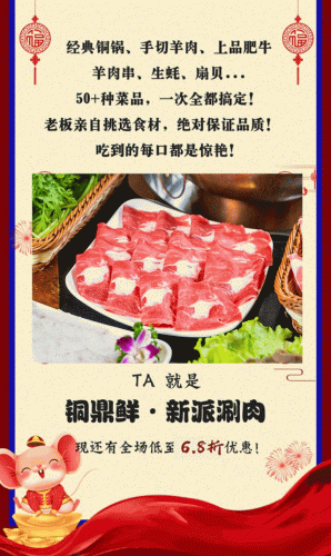 吃铜锅少不了手切羊肉,比起羊肉卷来说,吃起来更有嚼头过瘾!铜鼎鲜家羊肉没有膻味,吃起来又嫩又新鲜!