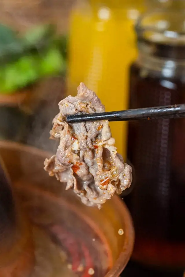在清汤锅中捞起来不蘸任何调料,还能尝到羊肉有一丝奶香味!简直是吃了就停不下来的节奏!